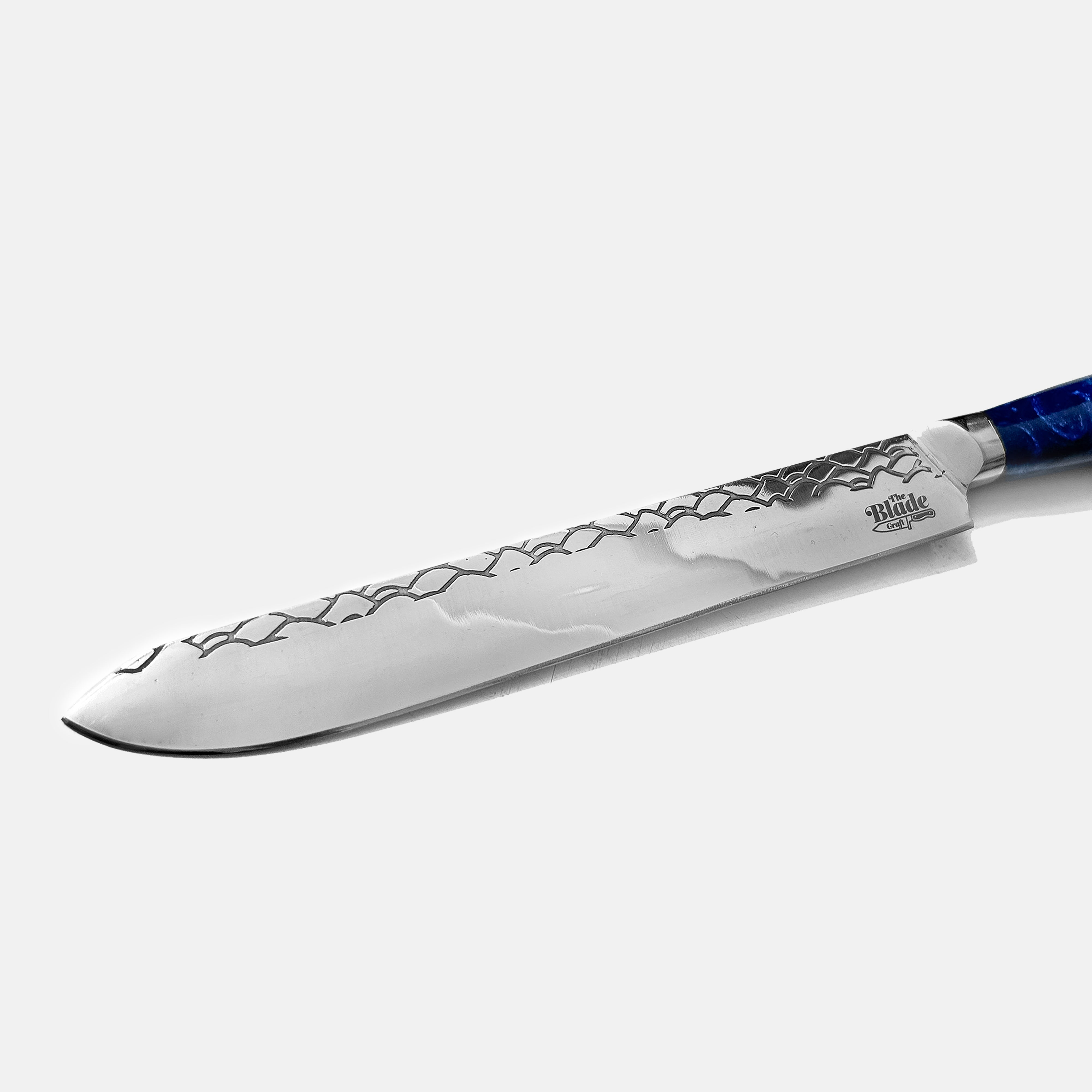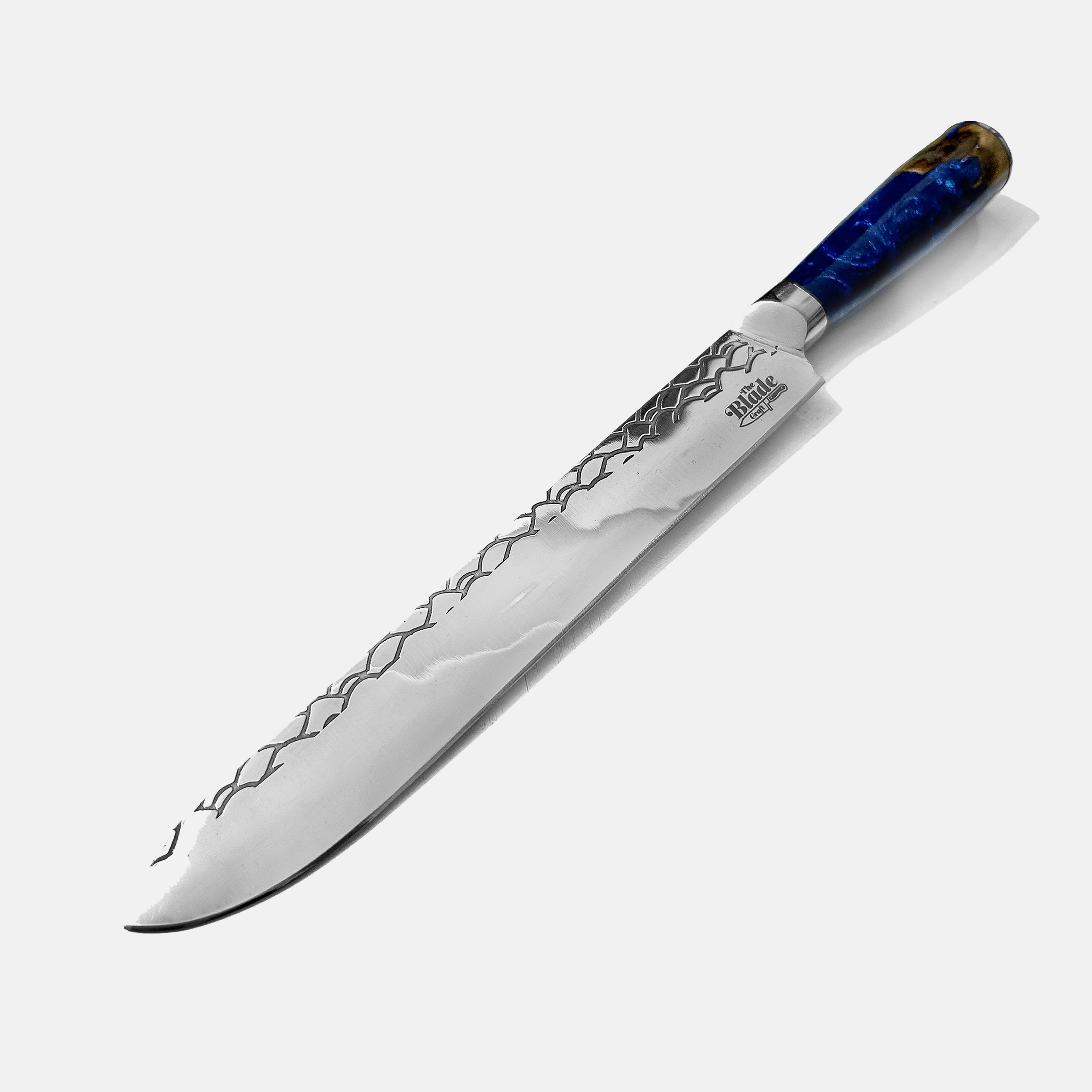 The 5-inch ergonomic handle, which is made of blue resin and stabilised wood, offers a firm, comfortable grip for total control. This slicer knife is designed to produce perfect results every time, whether you're filleting fish or cutting through brisket.