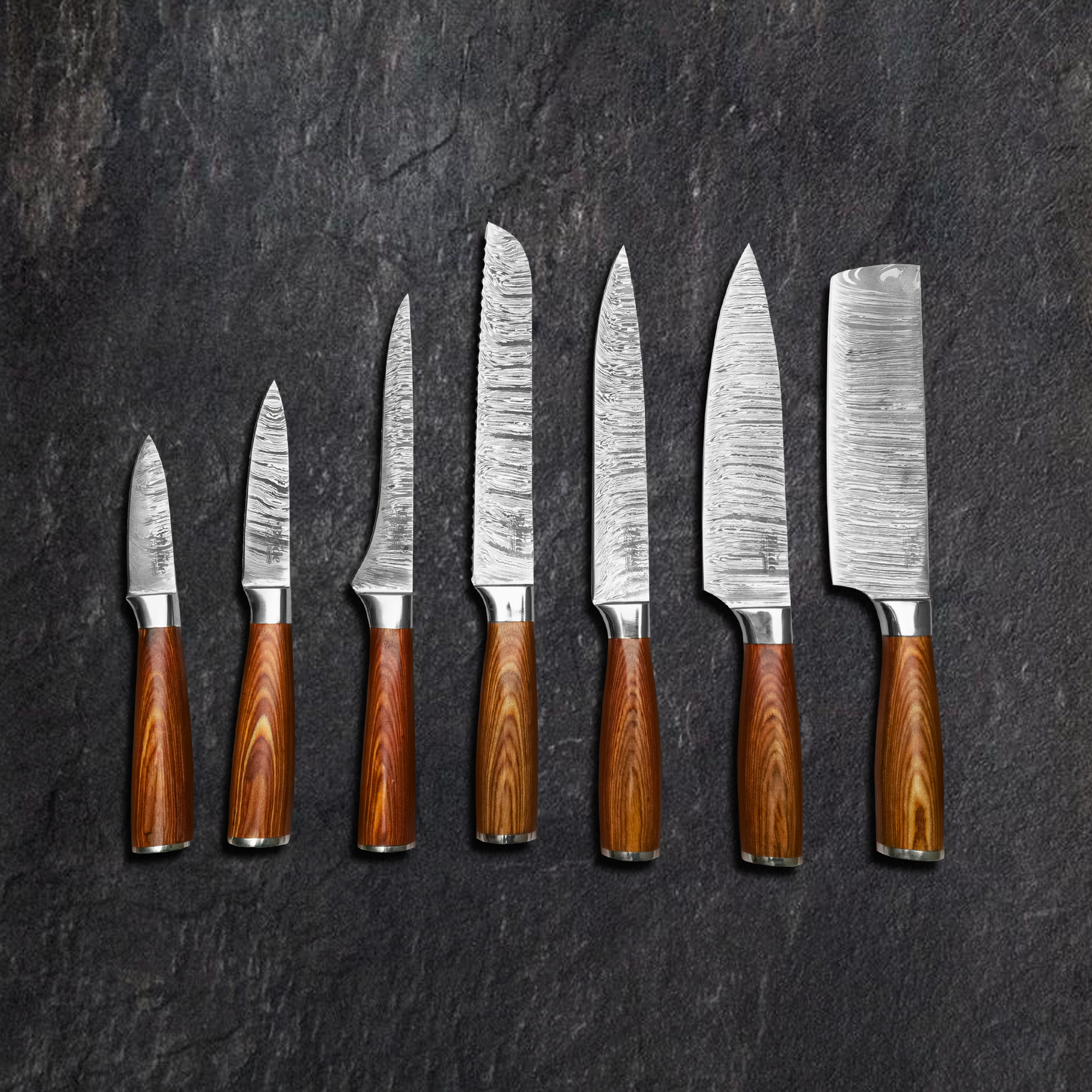 This ultimate collection includes all eight masterfully crafted knives from the Prime Cut Series, each designed for specific culinary applications: