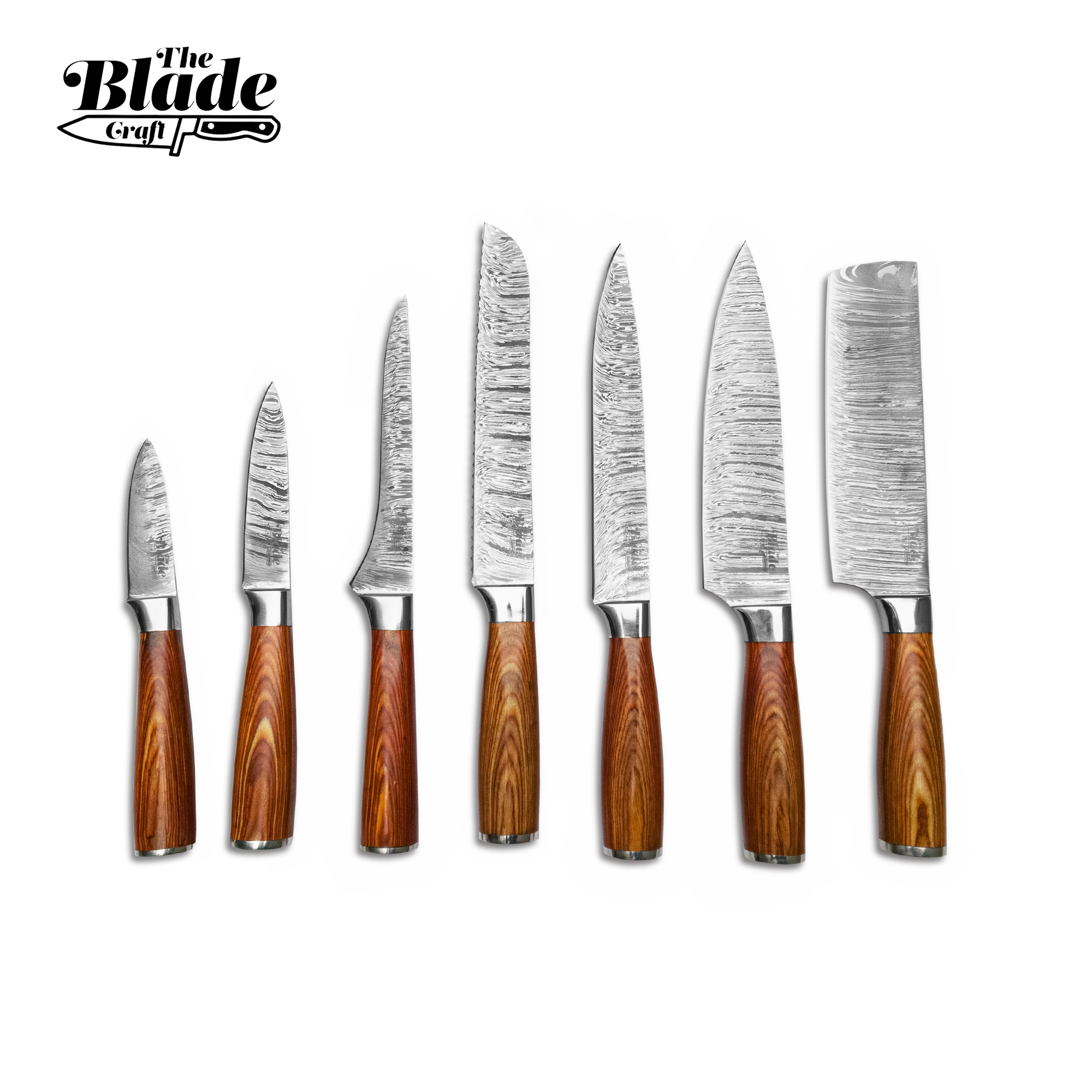With the Complete Prime Cut Series Collection, the ultimate knife set for both discerning chefs and enthusiastic home cooks, you can elevate your culinary skills. This all-inclusive set includes every outstanding blade from The Bladecraft's well-known Prime Cut Series, giving you the ideal implement for any kitchen task. This collection guarantees you unmatched control and performance, from deft dicing and precise slicing to sturdy carving and effortless boning.
