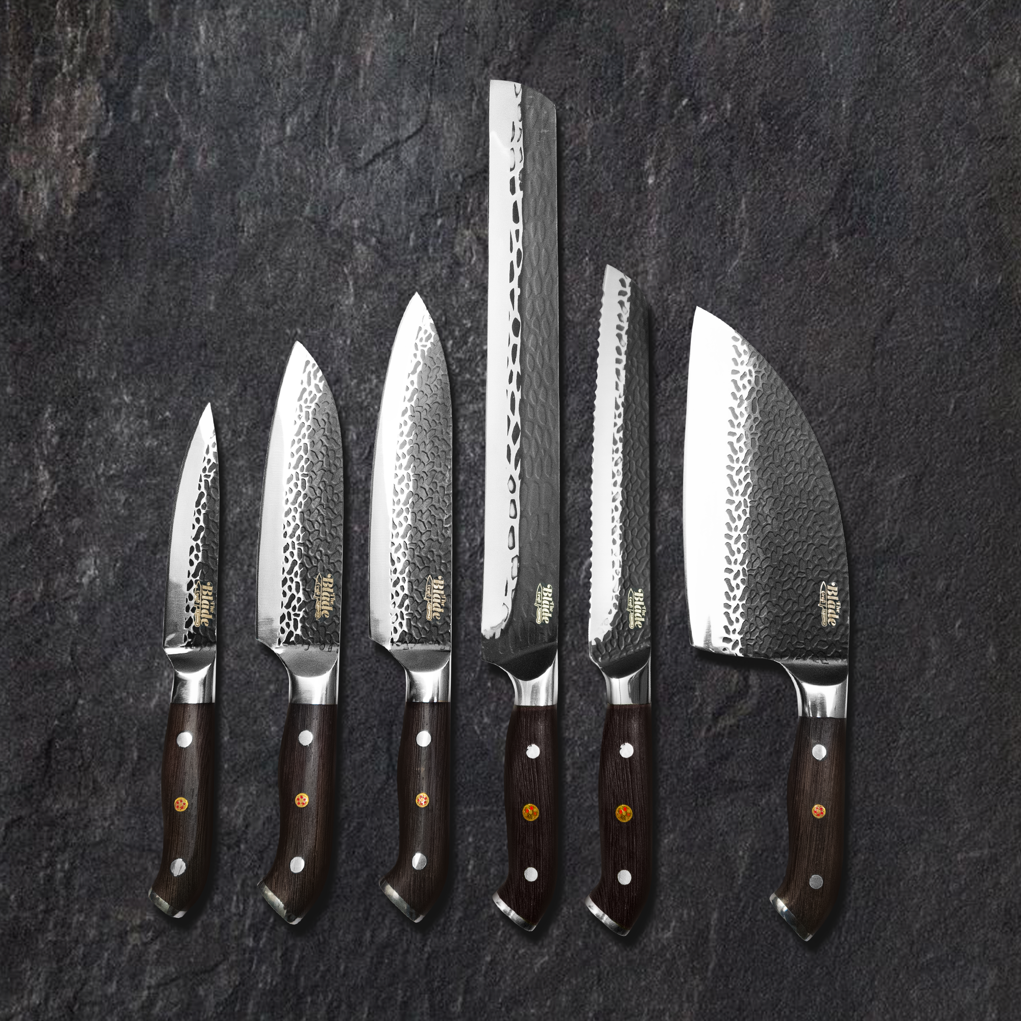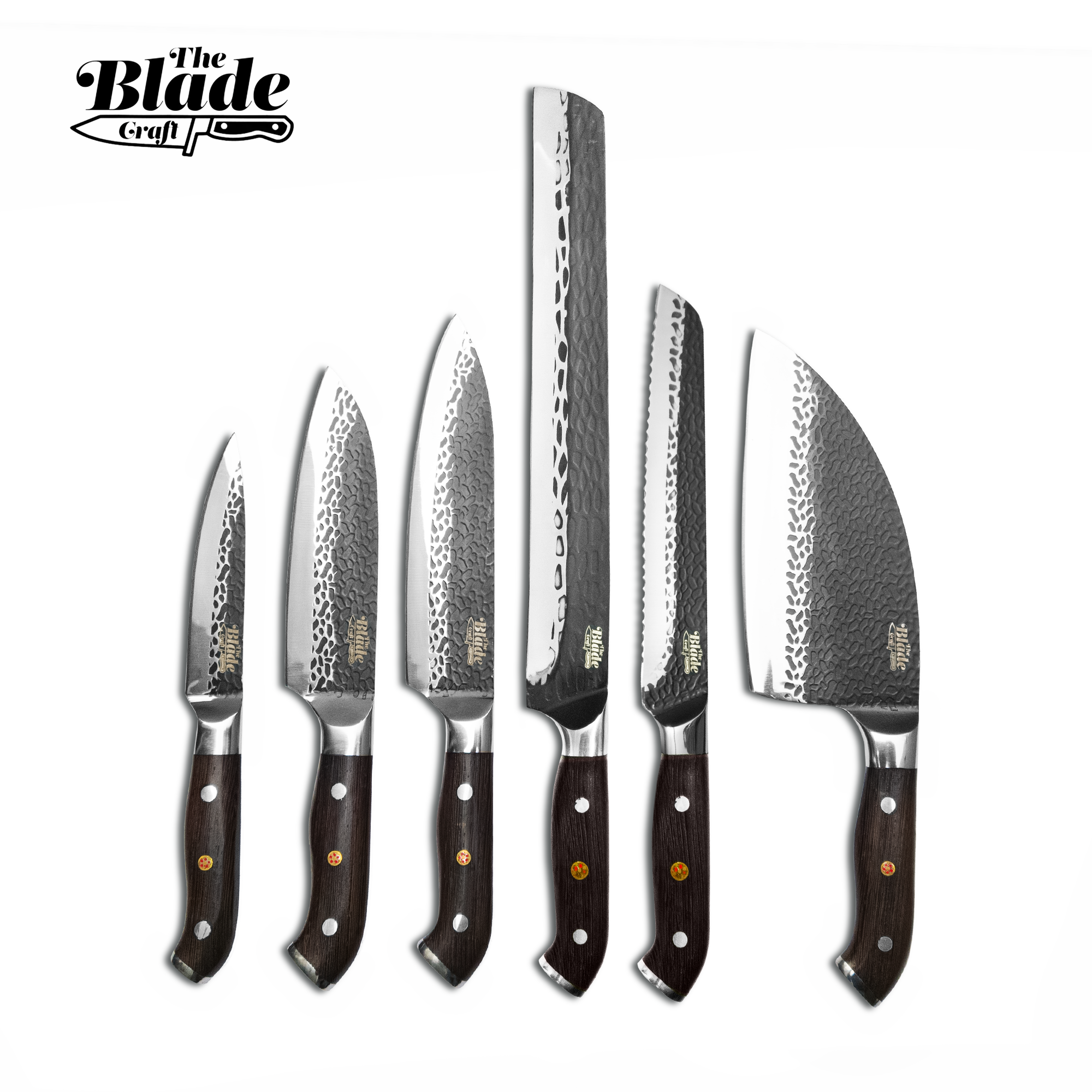 The EdgeCraft Series 6-Piece Knife Set from The Blade Craft is a comprehensive collection designed for both professional chefs and passionate home cooks. This set provides a specialized blade for nearly every kitchen task, combining stunning aesthetics with superior functionality.
