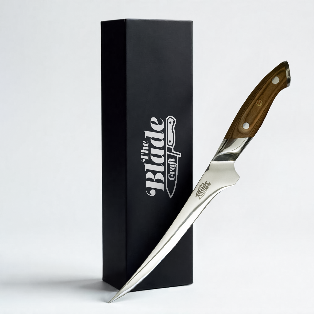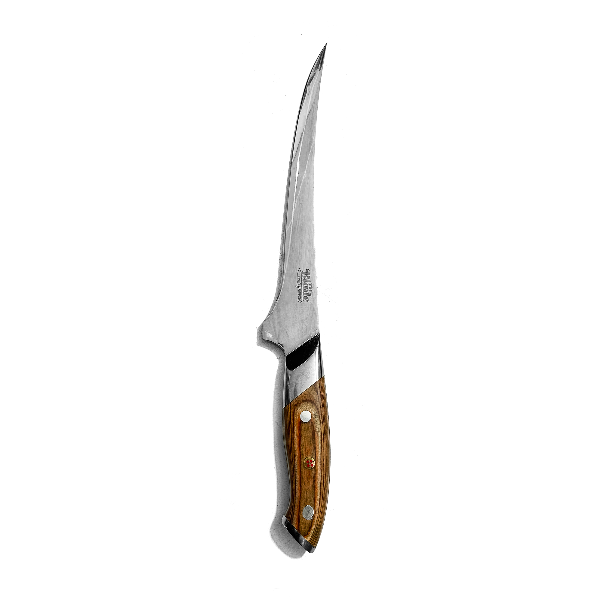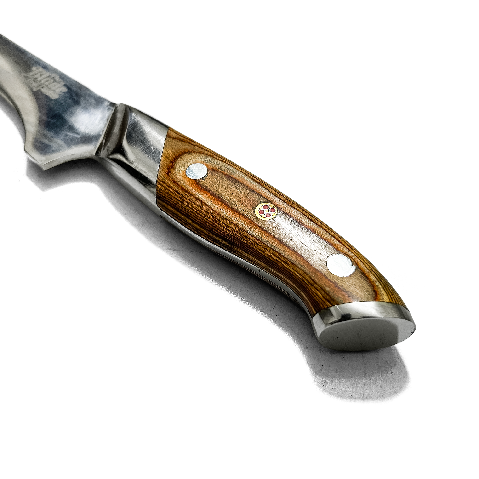 With our superb Boning Knife, a tool painstakingly made for unmatched control and precision, you can master the art of meat preparation. Despite its elegant appearance, this knife is your best friend when it comes to deftly removing meat from bone, cutting fat, and making cuts. Its strong, thin blade makes it incredibly easy to manoeuvre around joints and curves, guaranteeing consistently clean results and little waste. With its exceptional performance, ergonomic comfort, and long-lasting edge, this boning knife promises to make complex tasks surprisingly easy, whether you're a professional butcher or a home cook looking to improve your culinary skills.