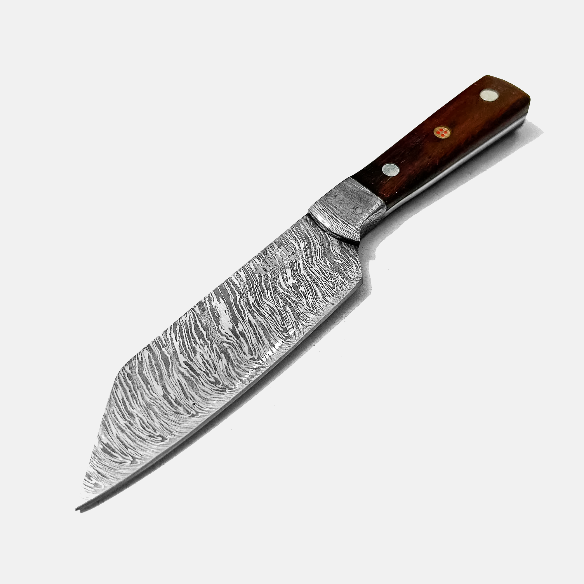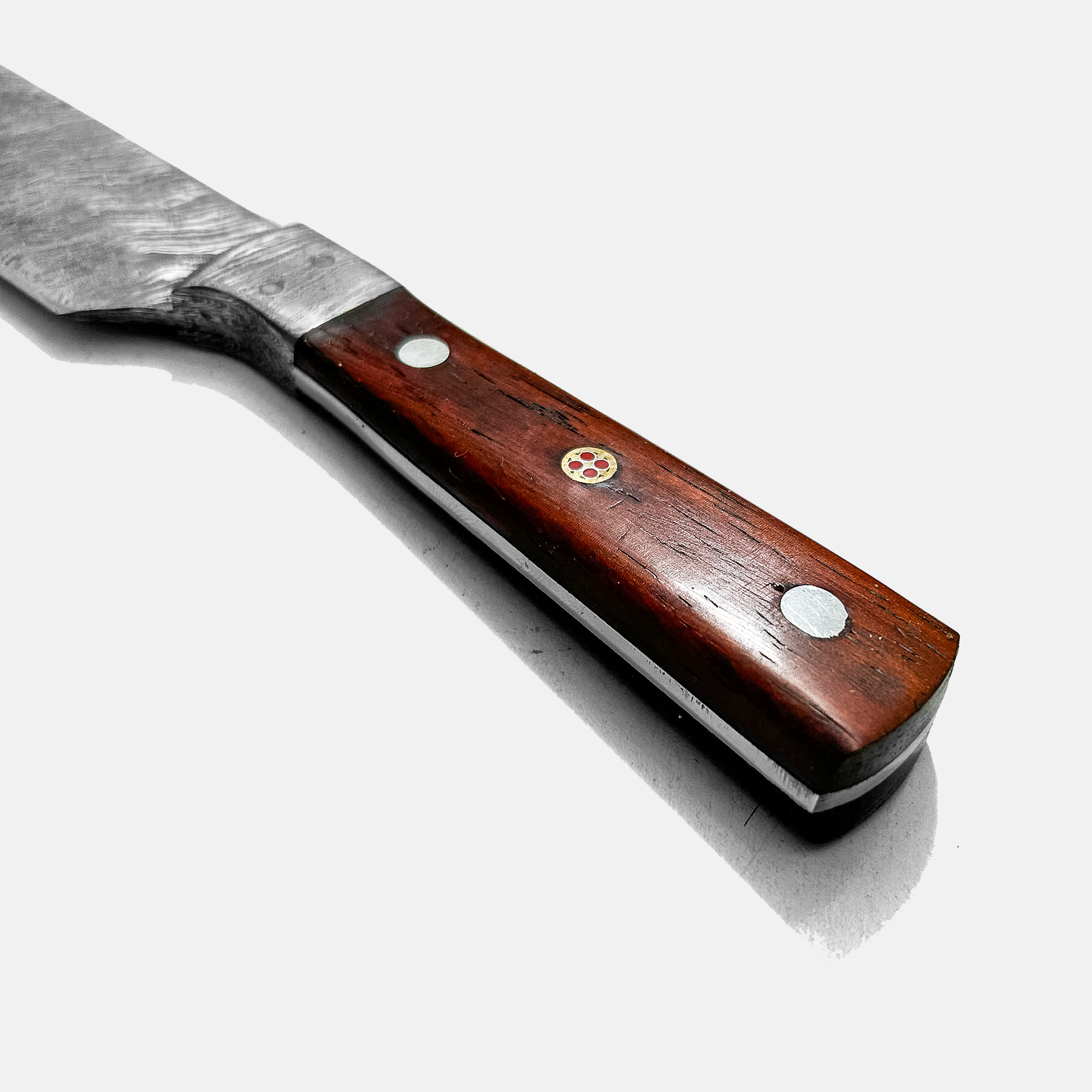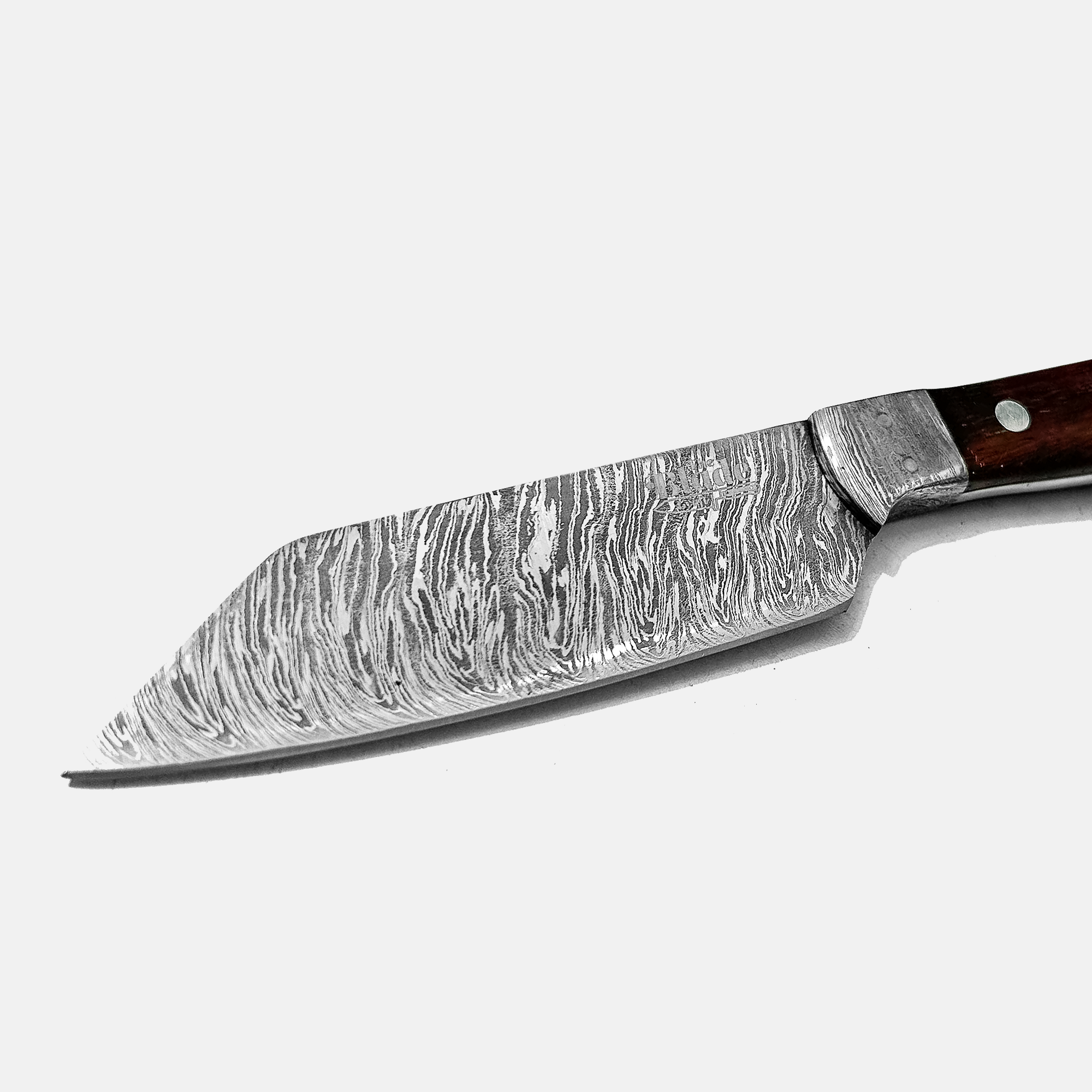 This blade, which is hand-forged from 224 layers of Damascus steel and combines AISI 4340 nickel alloy steel with AISI 5160 high carbon spring steel, provides remarkable resilience, durability, and edge retention. The blade's 2.8 mm thickness guarantees that, despite its sharpness and agility, it is still strong enough to make controlled, accurate cuts.