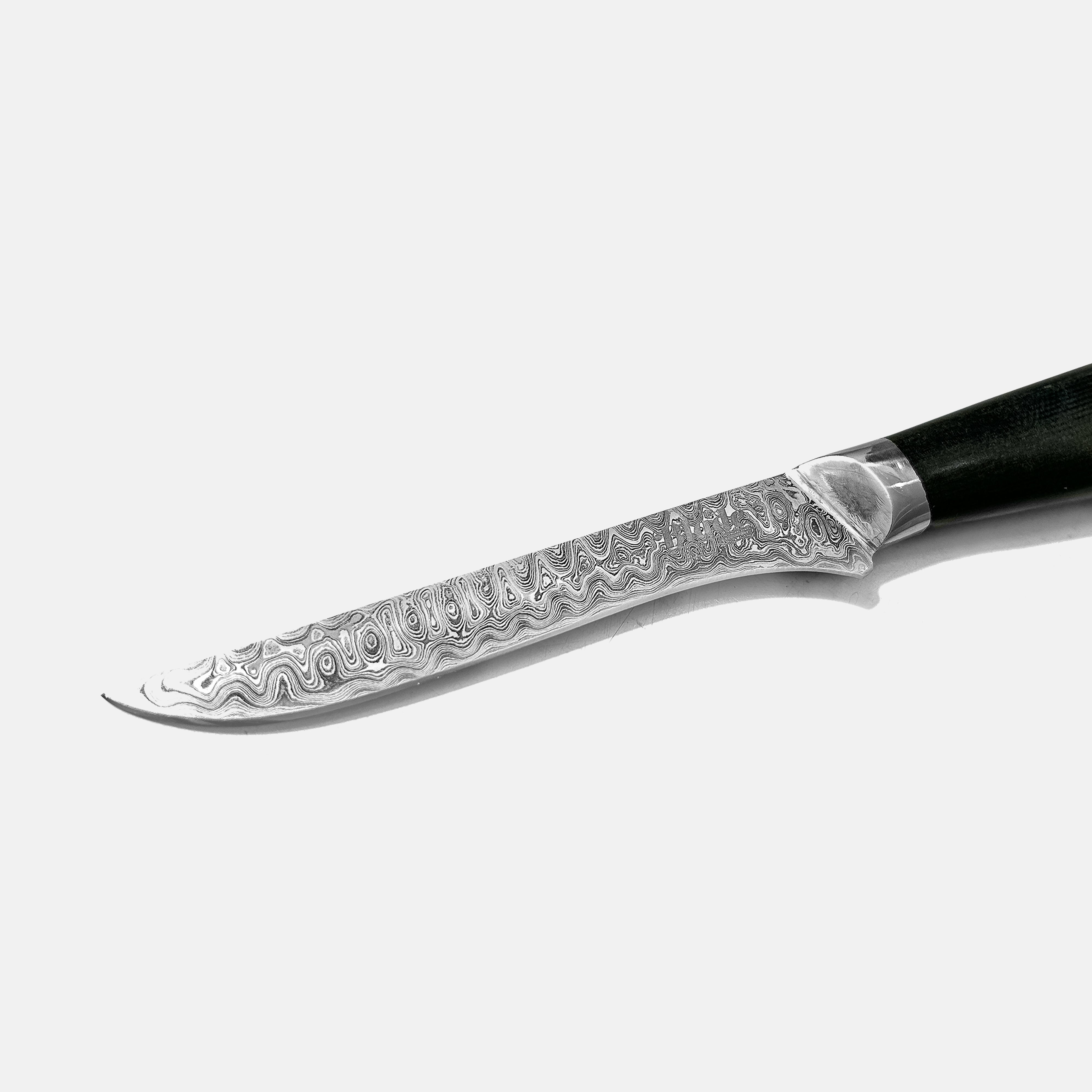 The full tang construction guarantees excellent balance and strength, while the slightly curved profile makes it possible to trim meat and fat smoothly.
