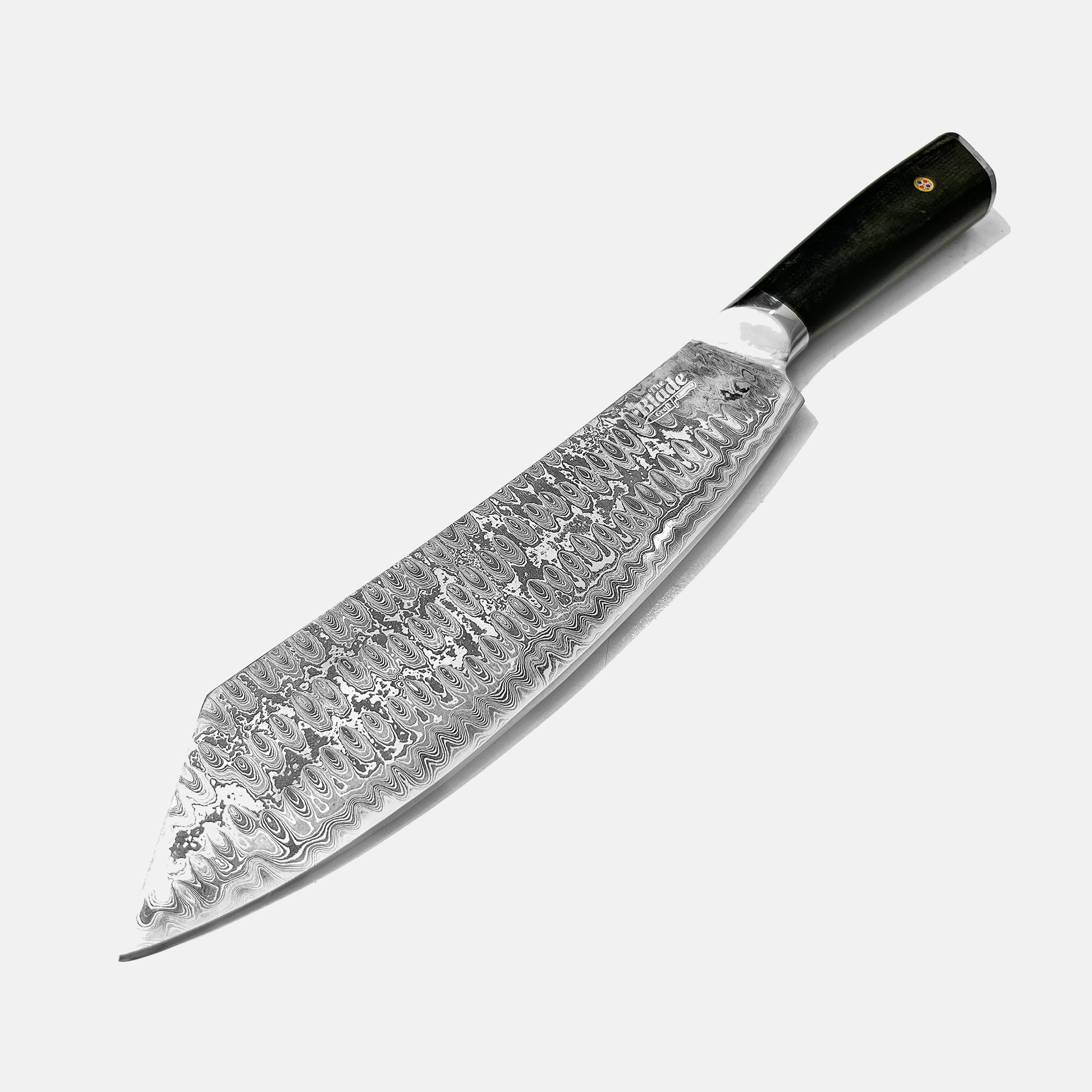 The blade is made from 224 layers of Damascus steel, which combines AISI 4340 nickel alloy steel and AISI 5160 high carbon spring steel to provide outstanding cutting performance, durability, and edge retention. The ideal weight-to-precision ratio is achieved by the 2.8 mm blade thickness, which produces strong cuts without sacrificing control.